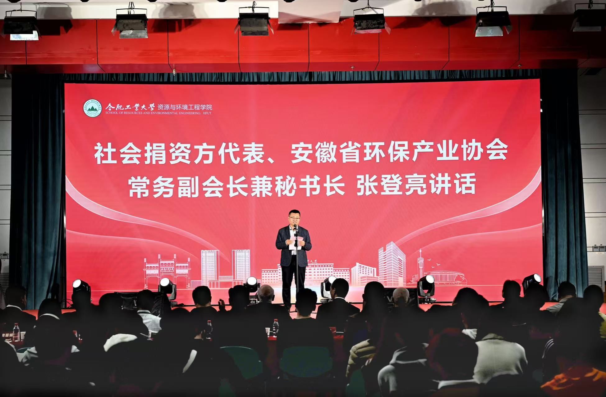 社会捐资方代表、安徽省环保产业协会常务副会长兼秘书长张登亮在讲话中指出,环保事业是未来发展的重要方向,而资环学院在环境人才培养、环保科学研究等方面做出了突出贡献。他期望通过奖学金等形式,激励更多学生投身环保事业,共同守护绿水青山,为建设美丽中国贡献力量。