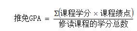 1.推免GPA针对学生前六个学期本专业教学计划内的课程进行计算,计算公式为: